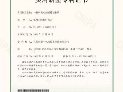實(shí)用新型專(zhuān)利證書(shū)《一種料果可翻轉(zhuǎn)輸送機(jī)構(gòu)》