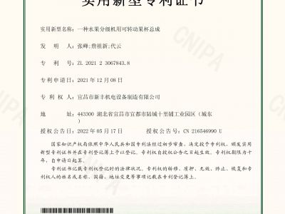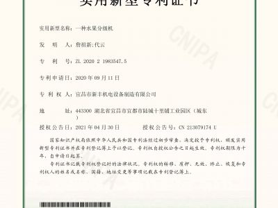 實(shí)用新型專(zhuān)利證書(shū)《一種水果分級(jí)機(jī)》