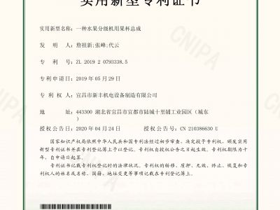 實(shí)用新型專(zhuān)利證書(shū)《一種水果分級(jí)機(jī)用果杯總成》